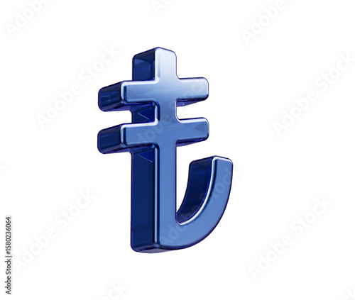 Fototapeta premium 3D Blue Turkish Lira symbol with a glassy finish, symbolizing digital...
