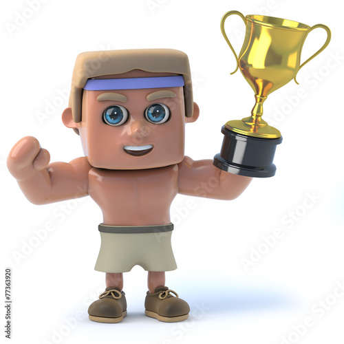 © Steve Young, Fototapeta premium 3d Bodybuilder wins a gold cup trophy