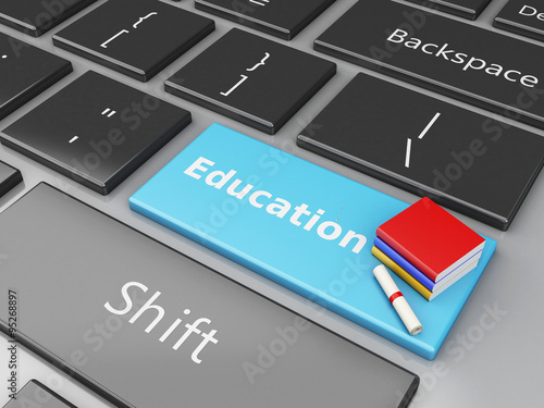 Fototapeta premium 3d books and diploma on computer keyboard.
