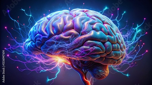 Obraz premium 3D Brain with Electric Currents: Macro Photography of Neural Network