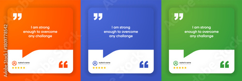 © Carkhe, Obraz premium 3D bubble testimonial banner, quote, infographic. Social media post template designs for quotes. Empty speech bubbles, quote bubbles and text box. Vector Illustration EPS10.