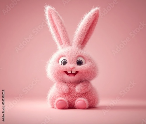 © Mali Jaroo, Obraz premium 3d Bunny Animation Cartoon Cute Smiling Fluffy Ears Pink Background Copy Space Happy Easter Greeting Card