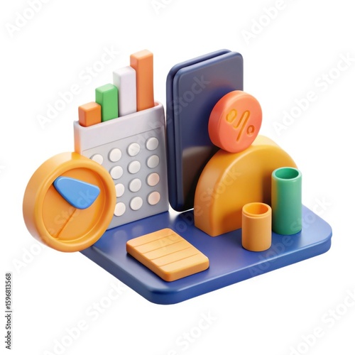 © Ali Bhai, Obraz premium 3d business and finance icons with clock and calculator isolated on white background