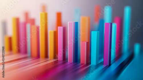© MdAl, Obraz premium 3D business chart icon with sleek, modern design, featuring dynamic, colorful bars representing growth, placed against a clean, professional background