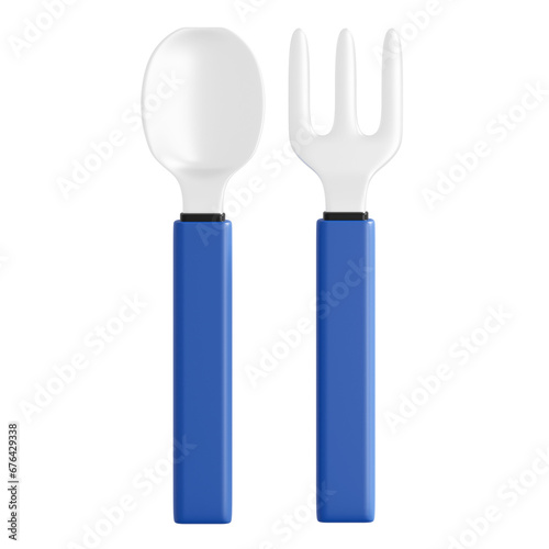 © MidnightRender, Fototapeta premium 3D Camping Utensils Icon: Blue Fork and Spoon