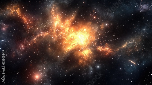 © VRVisionary, Naklejka premium 3D cartoon depiction of a nebula with a cluster of stars in deep space Science fiction art