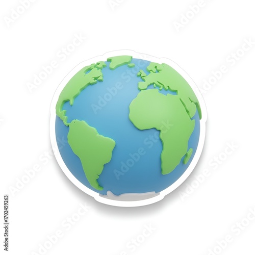 © yaakoub, Naklejka premium 3D cartoon Earth planet isolated sticker on white background