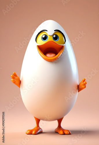 © Deepak, Fototapeta premium 3D Cartoon Egg Character on Peach Background