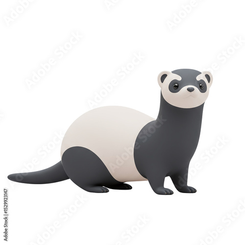 © PNG Lab, Obraz premium 3D cartoon ferret with long body and white face