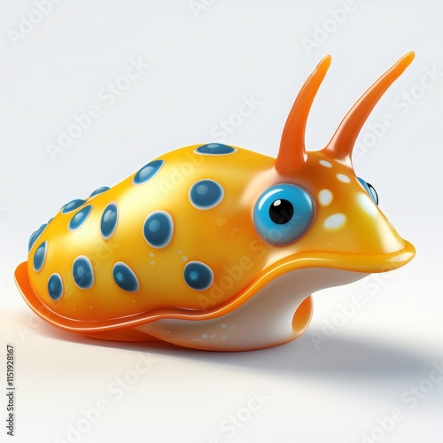 © ArtPixel-Portfolio, Fototapeta premium 3D cartoon firefly nudibranch with big blue eyes and orange antennas crawling on white background