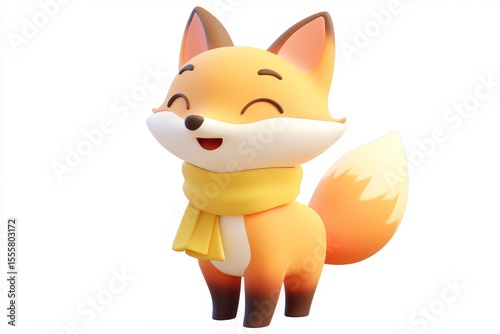 © Ruiqi, Fototapeta premium 3D cartoon fox icon with terracotta orange scarf and cream beige fur in ultra-high-definition isometric view on white background