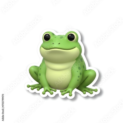 © yaakoub, Obraz premium 3D Cartoon Frog Sticker Isolated on White Background