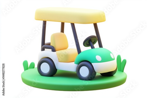 © Ruiqi, Fototapeta premium 3D cartoon golf cart icon in forest green and cream, ultra-high-definition details and 16K resolution, with a white background.