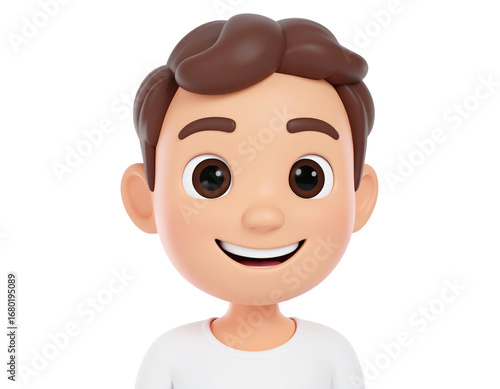 © Fridocha, Fototapeta premium 3D Cartoon Rendering of a Smiling Young Man with Brown Hair.