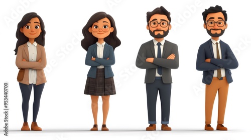 © Sarawut, Naklejka premium 3D cartoon style portrait of office workers in professional attire, with a plain white background