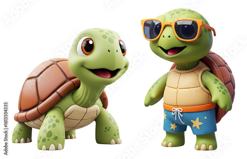 © Foxgrafix, Fototapeta premium 3D cartoon turtles wearing sunglasses isolated on transparent background, PNG file add