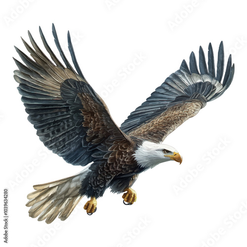 © EnelEva, Obraz premium 3D cartoon vector realistic illustration of an eagle flying, on a white background.
