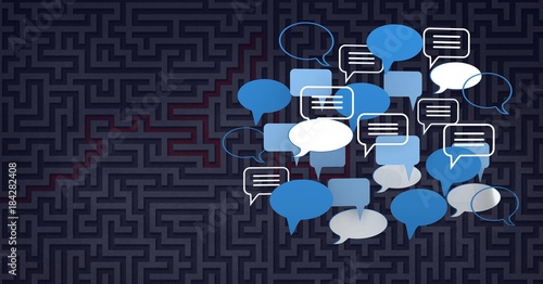© vectorfusionart, Obraz premium 3D chat bubble icons with maze background