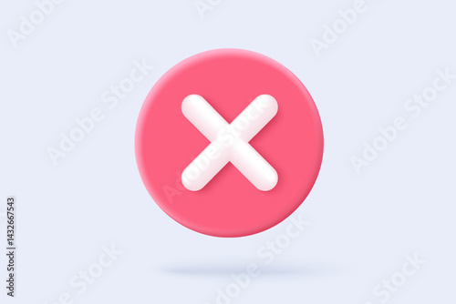 © Issara, Obraz premium 3d check wrong icon isolated on white background. negative check list button choice for false, correct, tick, problem, fail on application. emergency icon vector with shadow 3D rendering illustration