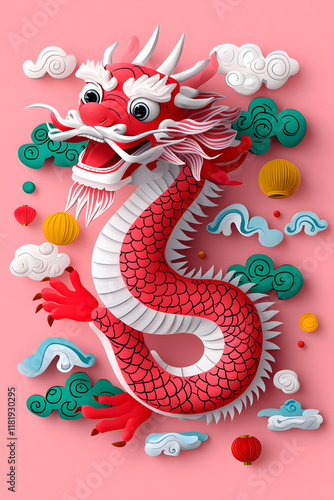 © Oksana_Latysheva, Obraz premium 3d Chinese new year greeting with a red dragon