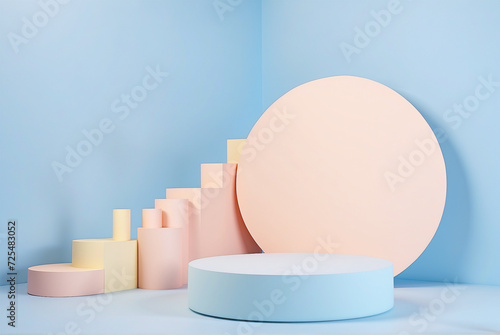 Fototapeta premium 3d cilinder podium pastel blue and pink