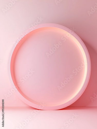 © vichudapan, Obraz premium 3D circular frame in pastel tones, adorned with floating crystal and flowers elements for a luxurious minimalist appearance