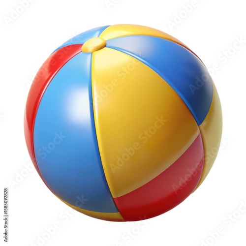 Fototapeta premium 3D Classic Beach Ball Icon – Red, Yellow, Blue Toy