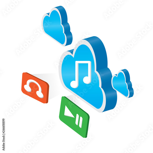 © lar01joka, Obraz premium 3d cloud computing icon with buttons - Vector