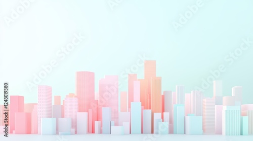 © jobim, Fototapeta premium 3D colorful cartoon cityscape featuring a variety of buildings with vibrant pastel colors. Perfect for playful urban-themed designs and animated graphics
