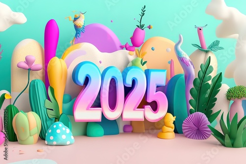 © STF Design , Obraz premium 3D Colorful Gradient sign 2025 on a light background