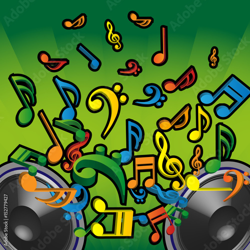 Fototapeta premium 3D Colorful Speakers and Flying Musical Notes Concept Background