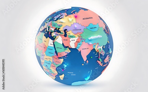 © Fahmida, Naklejka premium "3D Colorful World Map Globe – Political Globe with Countries and Borders for Educational and Infographic Use"