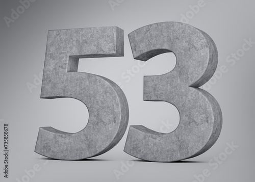 Fototapeta premium 3d Concrete Number Fifty Three 53 Digit Made Of Grey Concrete Stone Grey...