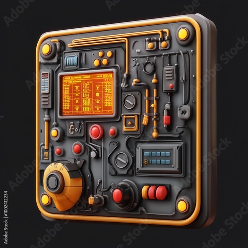 © Rjdp, Fototapeta premium 3D Control Panel Icon: Industrial Automation Control Illustration Logo
