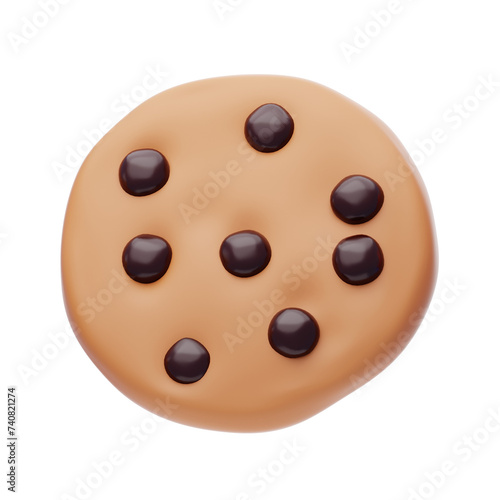 © Unerispace, Fototapeta premium 3D Cookie With Choco Chips. 3d illustration, 3d element, 3d rendering. 3d visualization isolated on a transparent background