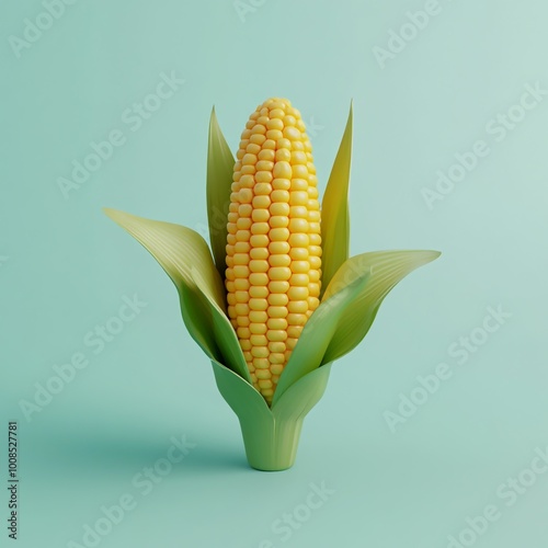 © Rjdp, Obraz premium 3D Corn on the Cob Icon: Classic Grilled Summer Snack Illustration Logo