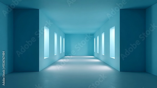 Fototapeta premium 3D corridor with columns in a modern architectural interior, Blue stone...