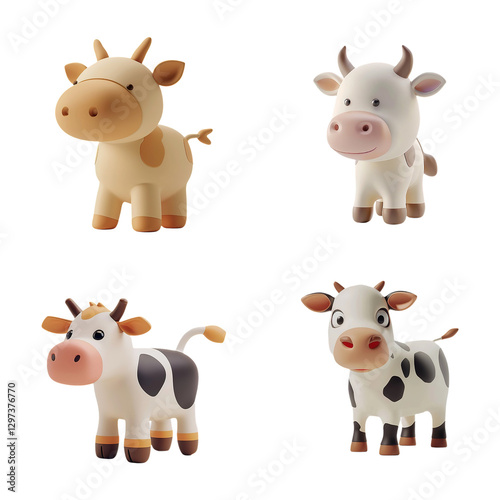 Obraz premium 3D Cows Set on Transparent Background