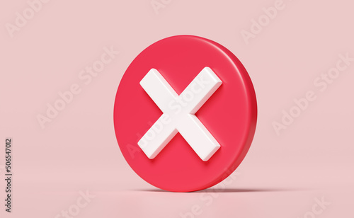 © sirawut, Fototapeta premium 3d cross check mark icon isolated on pink background. tick marks symbols concept, 3d render illustration