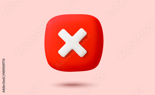 © Van, Fototapeta premium 3d cross mark or cancel icon with red box, isolated on background. Invalid icon in 3d vector. Vector illustration