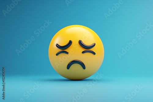 Fototapeta premium 3D Crying Eyes and Downturned Mouth Emoji on Glossy Light Blue Background -...