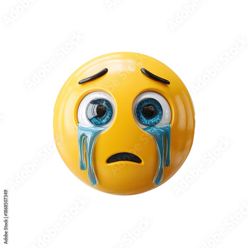Fototapeta premium 3D Crying Face Emoji with Tears and Sad Expression Isolated on transparent...