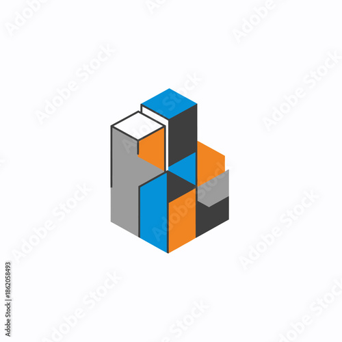 © Mahfirotul, Obraz premium 3D Cube Geometric Shape Abstract Design.