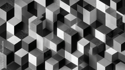© Camalia MN, Obraz premium 3D cube optical illusion geometric pattern in monochrome tones