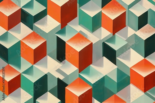 © nabakumar, Obraz premium 3D cubes tessellated into impossible patterns optical illusion