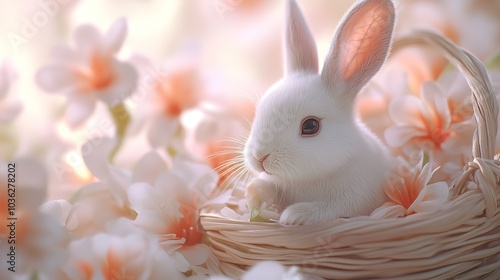 Obraz premium 3D Cute Baby Rabbit with Long Ears Sitting in a basket Pastel Background