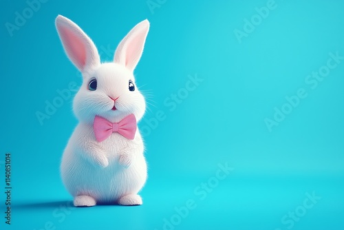 Obraz premium 3D cute bunny with bow tie on blue background, easter bunny, cartoon bunny,...