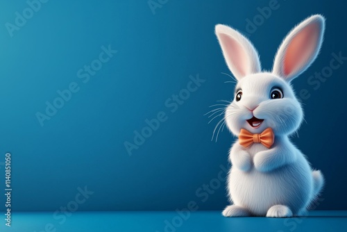 Obraz premium 3D cute bunny with bow tie on blue background, easter bunny, cartoon bunny,...