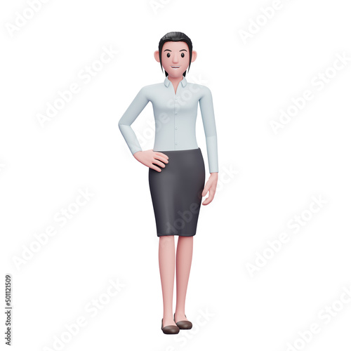 Fototapeta premium 3d cute business woman standing with hand on waist and legs crossed wear skirts and long shirts