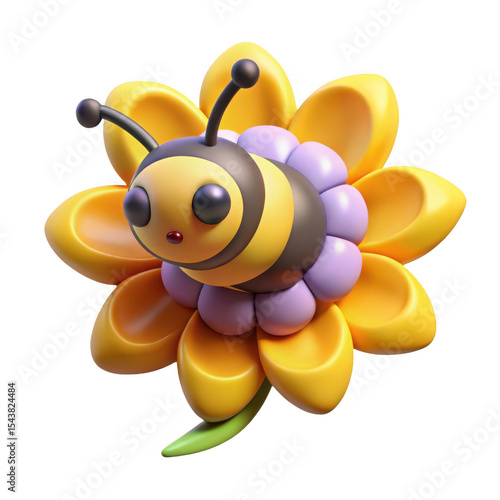 © Vectgo arjina, Fototapeta premium 3d cute cartoon bee on flower isolated on transparent background